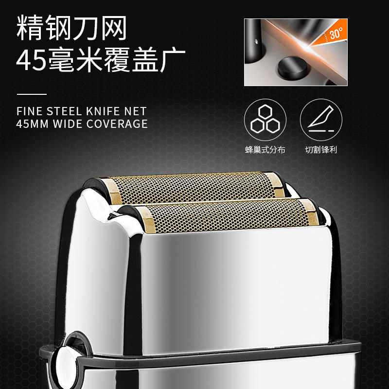 เครื่องโกนหนวดไฟฟ้า Kemei รุ่น KM-TX5 ใบมีดคู่ ตัวเครื่องโลหะ ชาร์จไฟได้ สำหรับผู้ชาย เครื่องเล็มหนวดเครา พร้อมสายชาร์จ USB สีเงิน