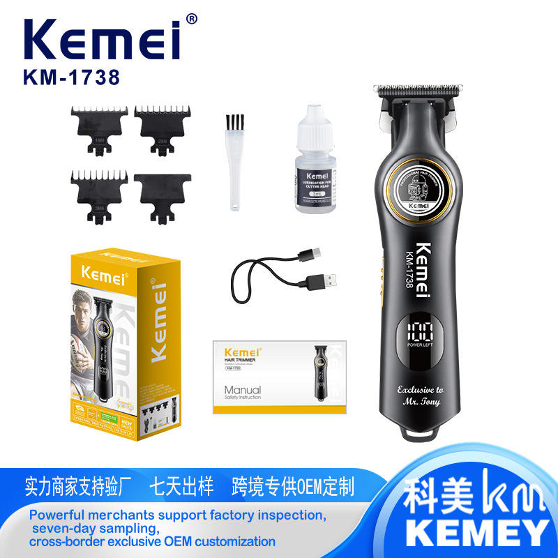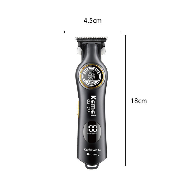 เครื่องตัดผม Kemei รุ่น KM-1738 ขนาด 18 ซม. แบบชาร์จไฟได้ สำหรับมืออาชีพ รุ่นสำหรับร้านเสริมสวย พร้อมหน้าจอดิจิตอล