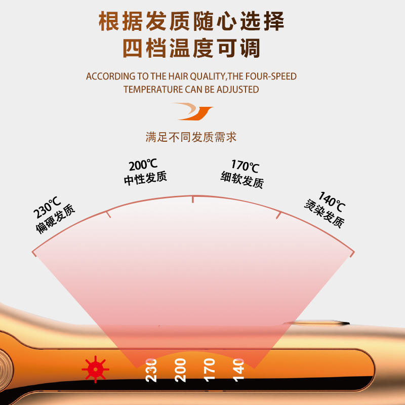 เครื่องหนีบผมเคเมอิ 30 ซม. สีทอง พร้อมระบบปรับอุณหภูมิและปล่อยประจุลบ สำหรับใช้ในบ้าน