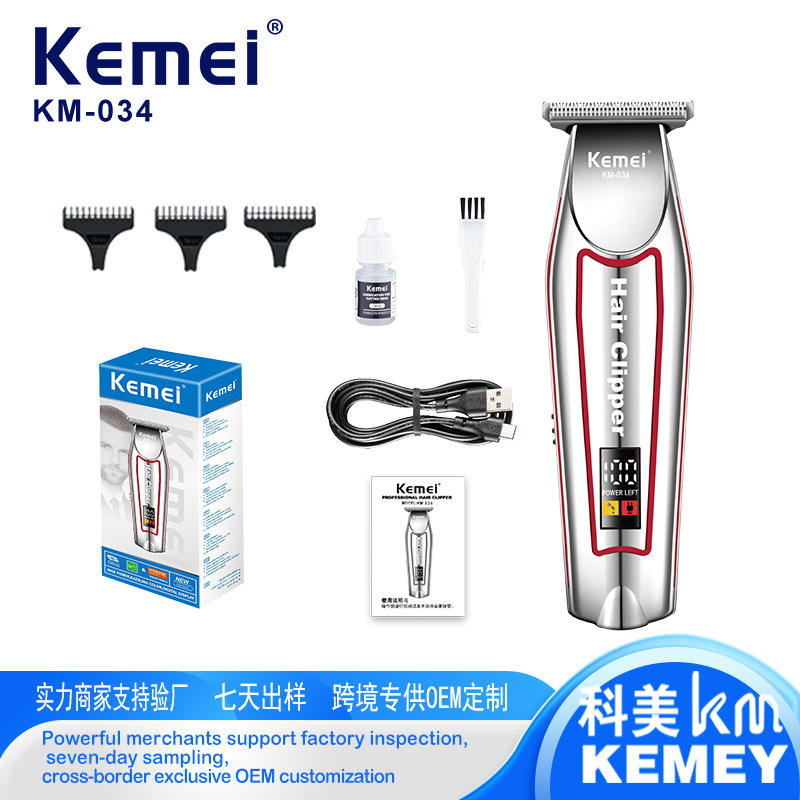 เครื่องตัดผมไฟฟ้า Kemei KM-034 ขนาด 13.5 ซม. หน้าจอดิจิตอล ชาร์จไฟได้ ตัวเครื่องโลหะ สำหรับใช้ในบ้าน