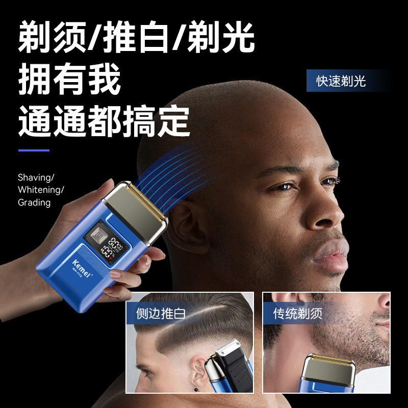 เครื่องโกนหนวดไฟฟ้า Kemei KM-1112 แบบใบมีดเคลื่อนที่ หน้าจอ LCD แบตเตอรี่แบบชาร์จได้ สีน้ำเงินรอยัล สำหรับผู้ชาย