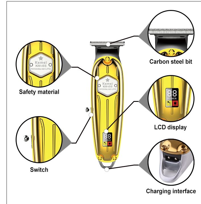 เครื่องตัดผม Kemei KM-i5s สำหรับดูแลเส้นผมส่วนบุคคล แบตเตอรี่ 1400mAh กำลังไฟ 5W หน้าจอ LCD พกพาสะดวก ใช้ได้ทั้งในบ้านและร้านตัดผม