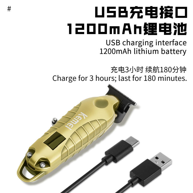 เครื่องตัดผมไฟฟ้า Kemei รุ่น KM-2293 ตัวเครื่องโลหะ หน้าจอดิจิตอล พร้อมฟังก์ชั่นความปลอดภัย รุ่นชาร์จไฟได้