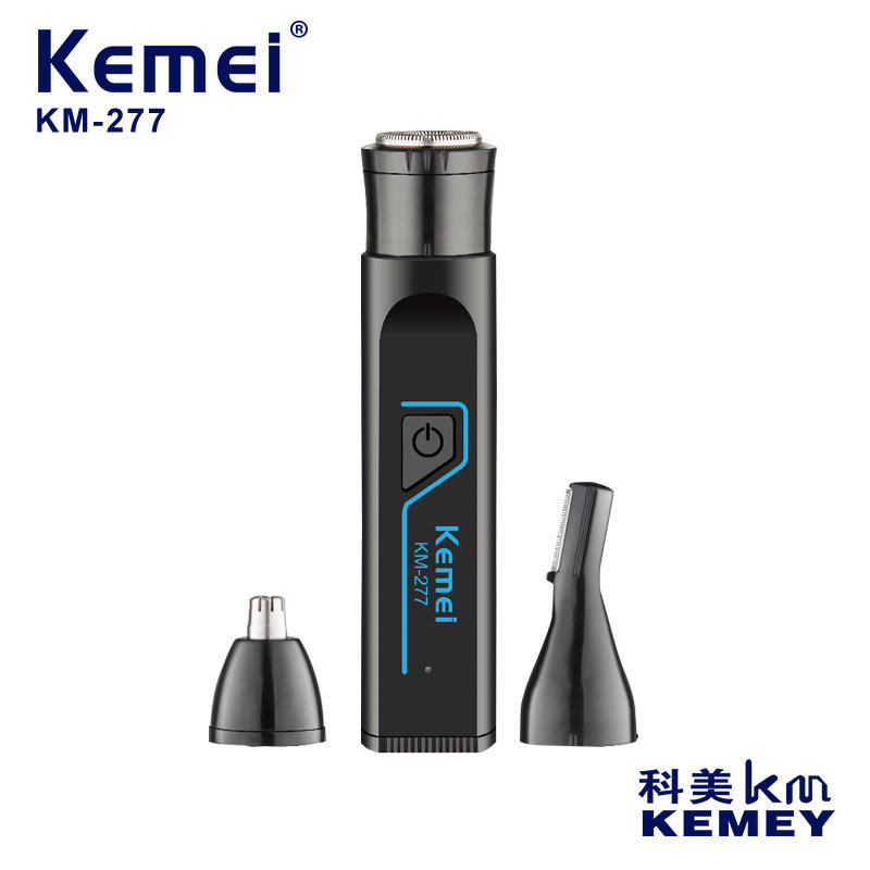 เครื่องโกนหนวดไฟฟ้า Kemei รุ่น KM-277 แบตเตอรี่แบบชาร์จได้ สำหรับผู้ชาย สีดำ ชุดอุปกรณ์ตกแต่งขน 3 in 1