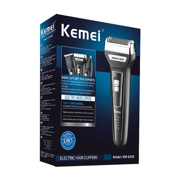 Kemei Km-6558 Multifunctional Waterproof 3 in 1 Cutter Head Usb Men Shaver Electric Kemei Electric Shaver