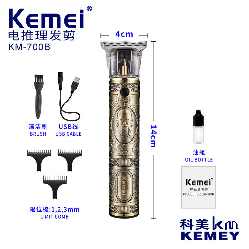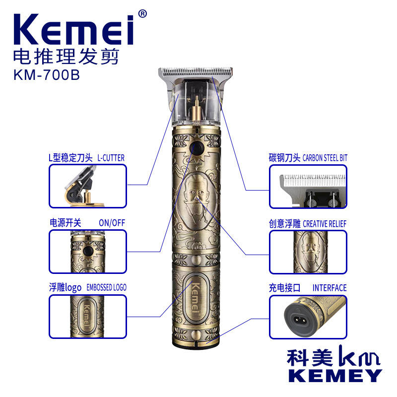 เครื่องตัดผมไฟฟ้า Kemei รุ่น KM-700B แบบชาร์จได้ ตัวเครื่องโลหะ กำลังแรง 7000-9000 รอบต่อนาที สำหรับใช้ในบ้าน