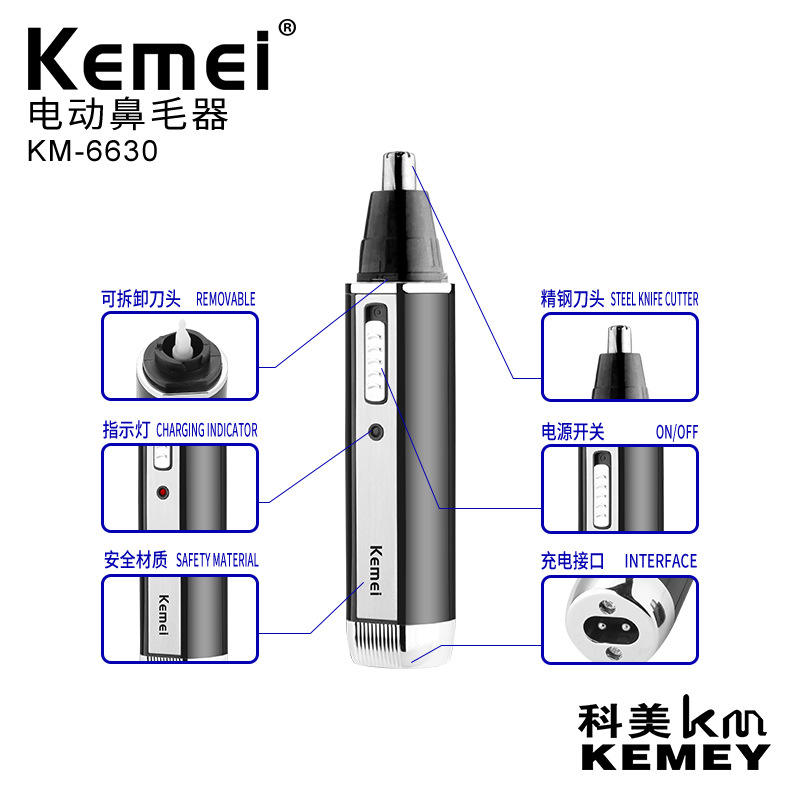 เครื่องตัดขนจมูกเคเมอิ Km-6630 เครื่องโกนหนวดไฟฟ้าอเนกประสงค์สำหรับจมูก หู คิ้ว จอน ตัดแต่งสีเทา สีดำ