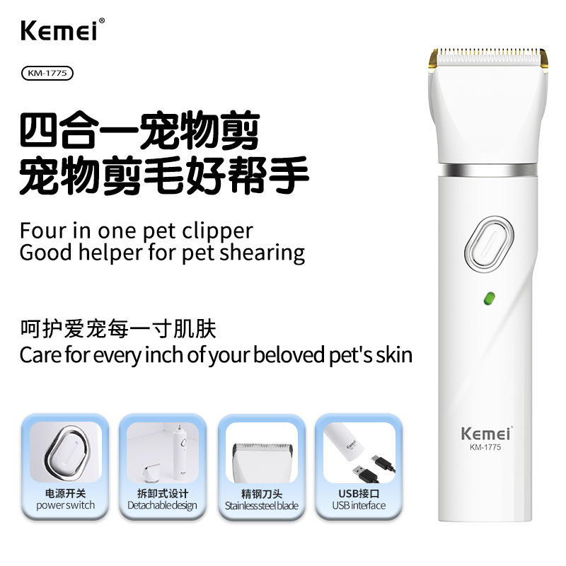 เครื่องตัดขนสัตว์เลี้ยง Kemei รุ่น KM-1775 4 in 1 แบบชาร์จไฟได้ สำหรับสุนัขและแมว