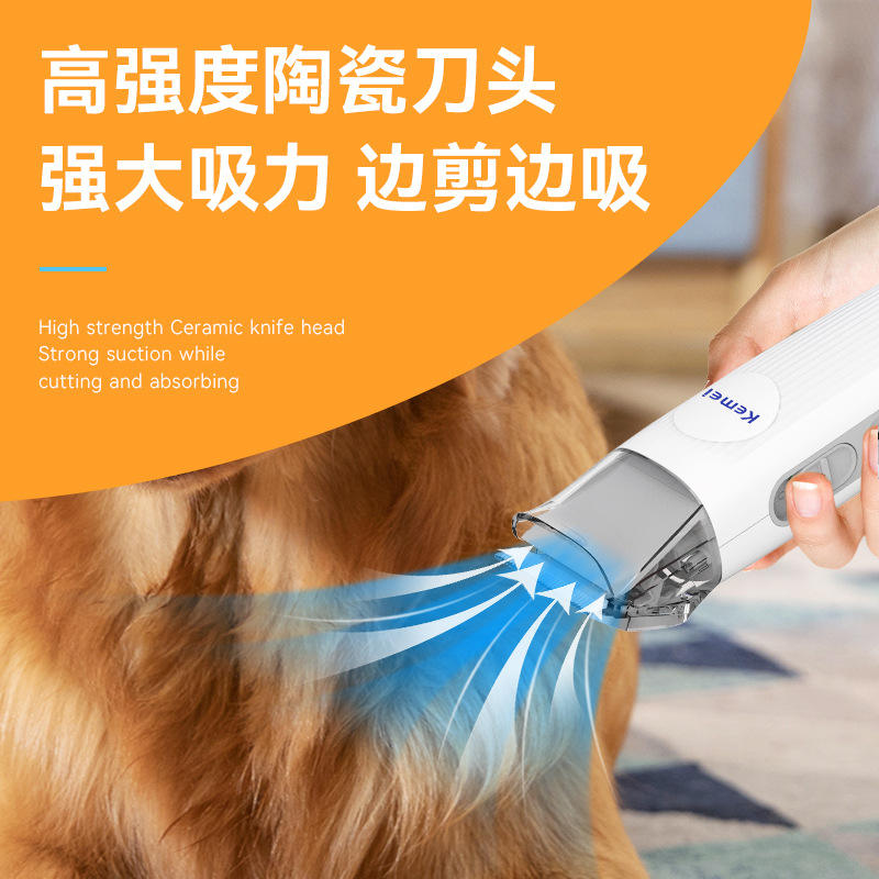 เครื่องตัดขนสัตว์เลี้ยง Kemei ใบมีดเซรามิกแบบชาร์จไฟได้พร้อมระบบดูดฝุ่นสำหรับสุนัขและแมว รุ่น KM-CW2098