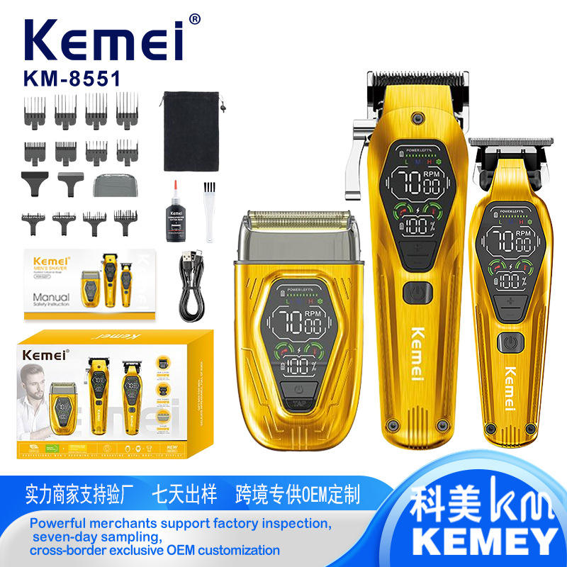 เครื่องตัดผมมืออาชีพ Kemei ขนาด 17 ซม. ตัวเครื่องอะลูมิเนียมอัลลอยด์ 7000-9000 รอบต่อนาที เครื่องตัดผมไฟฟ้าสำหรับผู้ชาย