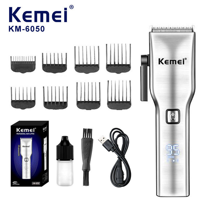 เครื่องตัดผมมืออาชีพ Kemei รุ่น KM-6050 เครื่องตัดผมไฟฟ้าโลหะพร้อมจอแสดงผลดิจิตอลและการชาร์จแบบ USB