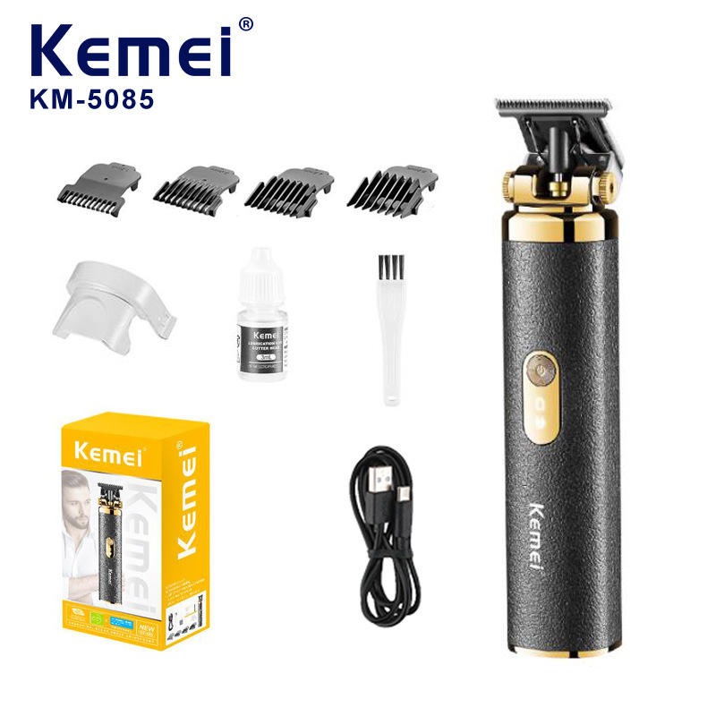 เครื่องตัดผมมืออาชีพเคเมอิ Km-5085 ชาร์จ USB ปรับความยาวได้สำหรับผู้ชาย ตัดแต่งหนวดเครา