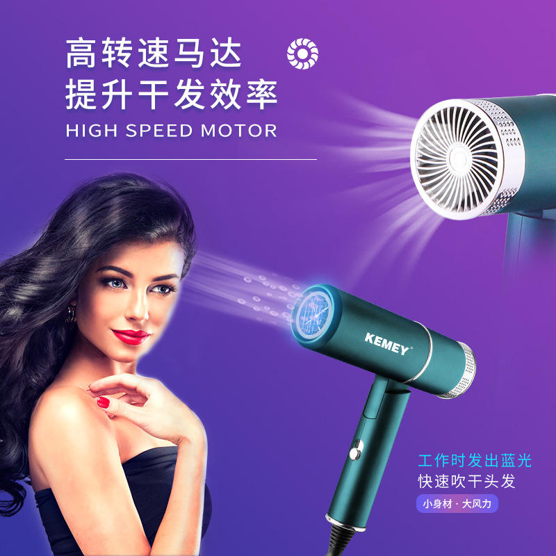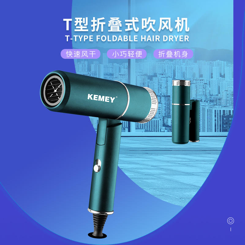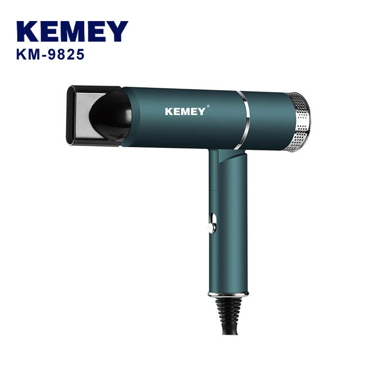 เครื่องเป่าผมแบบพับได้ Kemey รุ่น KM-9825 มอเตอร์ AC สีเขียวอาเกต ป้องกันอุณหภูมิเกินหลายระดับ สำหรับใช้ในร้านเสริมสวยและที่บ้าน