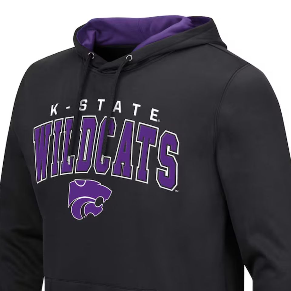 เสื้อฮู้ดฟลีซทอสีดำสำหรับฤดูหนาวของมหาวิทยาลัยเคนตักกี้ พร้อมโลโก้ไวลด์แคทส์สีม่วงแบบมีซับในและปักลายอย่างเป็นทางการสำหรับแฟนคลับ