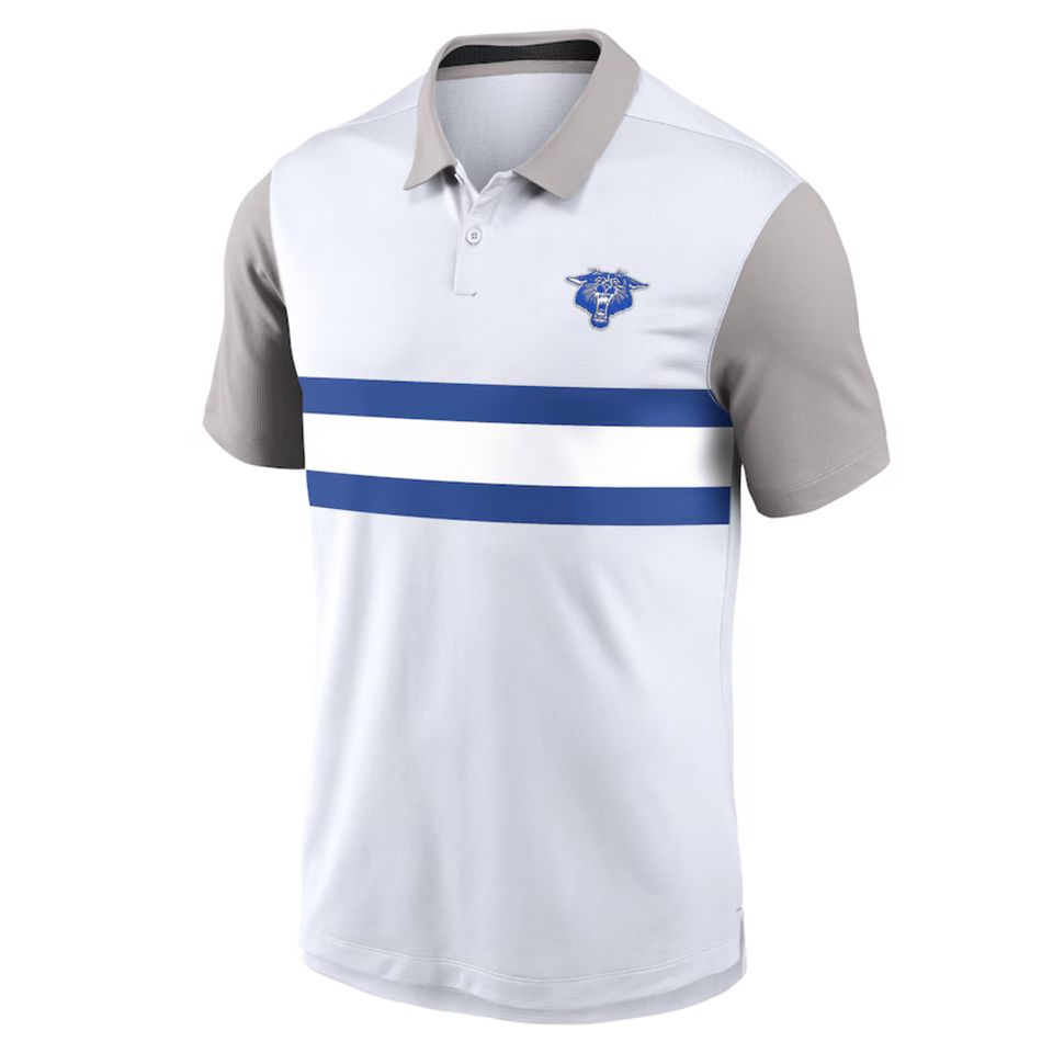 Kentucky มหาวิทยาลัย Hbcu เสื้อโปโลสีขาวเทาพร้อมโลโก้ด้านหน้าผ้าถักระบายอากาศได้ดีไซส์ใหญ่พิเศษ