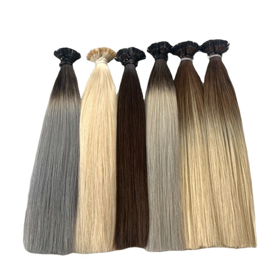 วิกผมเคราตินเรมี่บริสุทธิ์ของเวียดนามแหวนไมโคร itip ปลายแบนผสมลูกไม้ผมตรงสไตล์ประหลาดเครื่องทอสองชั้น