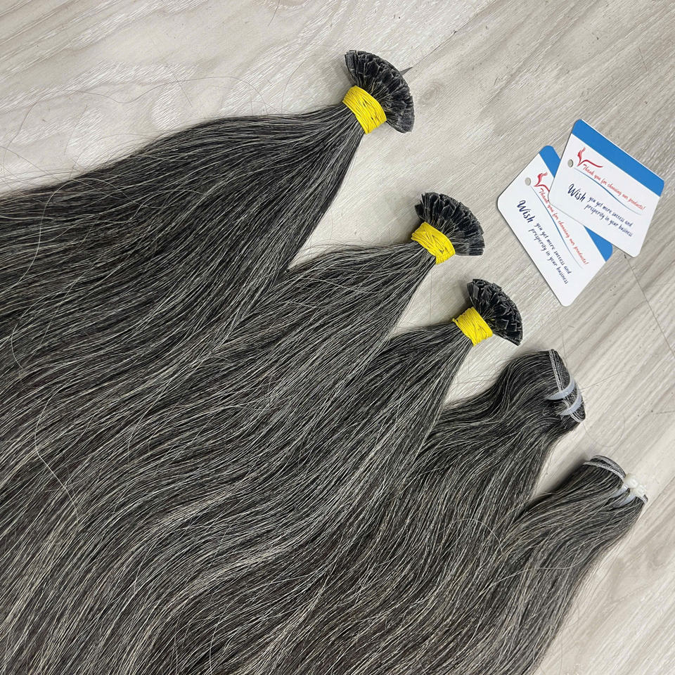 ผมต่อแบบเคราติน K Tip ผมเวียดนามแท้แบบดับเบิ้ลดรอว์น จัดเรียงเกล็ดผม ขายส่ง สีเทา