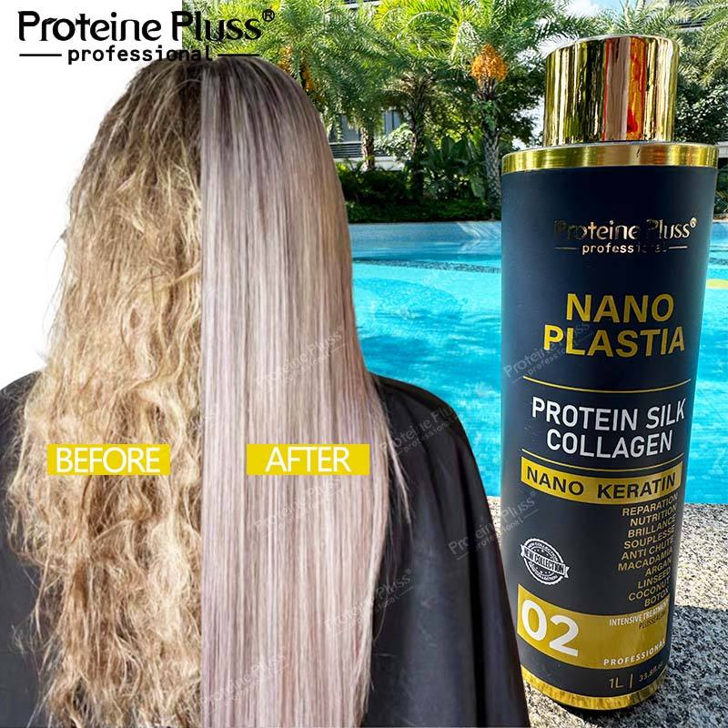 เคราตินโปรตีน ผลิตภัณฑ์ดูแลเส้นผมระดับมืออาชีพ สำหรับการยืดผมแบบโบติกซ์ เคราตินบราซิลเลียน สำหรับผมชี้ฟู นาโนพลาสติก