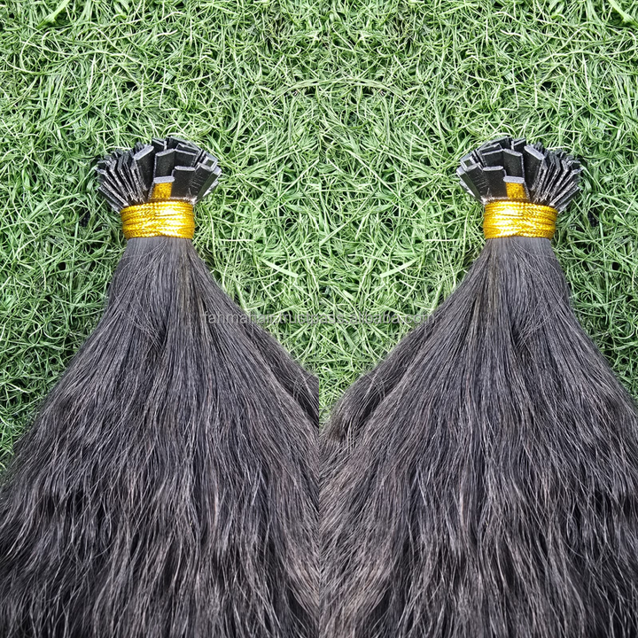 ต่อผมเคราตินแบบหรูหรา ปลายแบนขนาด 0.5x0.8 ซม. ผมแท้ 100% เรียงเกล็ดผมอย่างเป็นธรรมชาติ เวอร์จิ้น เรมี่ สีดำธรรมชาติ 1b แบบหยิก