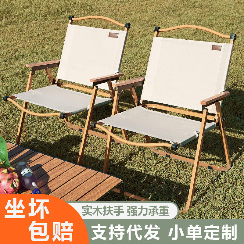 เก้าอี้เคอร์มิต เก้าอี้พับได้สำหรับใช้งานกลางแจ้ง เก้าอี้สนามแบบพกพาพร้อมที่วางแขนไม้และโครงเหล็ก สำหรับปิกนิก แคมป์ปิ้ง และใช้บนชายหาด