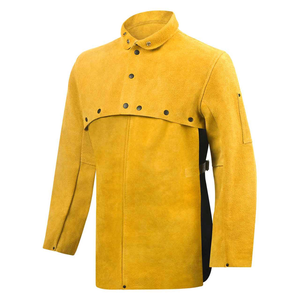 เคฟลาร์แจ็คเก็ตงานเชื่อมหนังกลับแท้เย็บติดเพื่อการป้องกันความร้อนที่เข้มข้นและทนต่อการเสียดสี