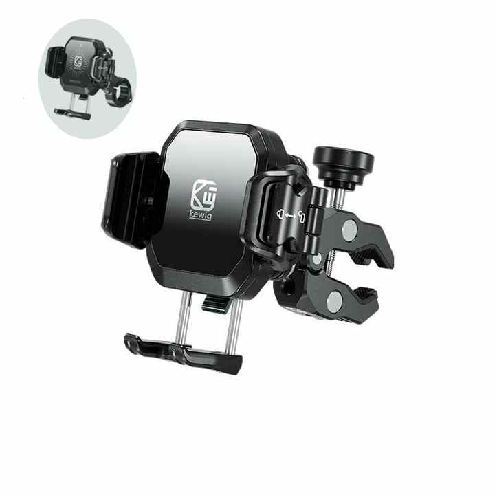 ที่ยึดโทรศัพท์มอเตอร์ไซค์ Kewig ODM พร้อมที่ชาร์จไร้สายและ Type-C ป้องกันการสั่นสะเทือน ที่วางโทรศัพท์จักรยาน ที่ยึดโทรศัพท์จักรยานอะลูมิเนียม