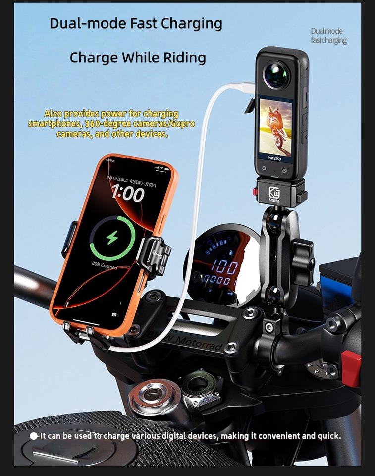 Motorcycle Mobile Phone Holder With Dual-mode Charging