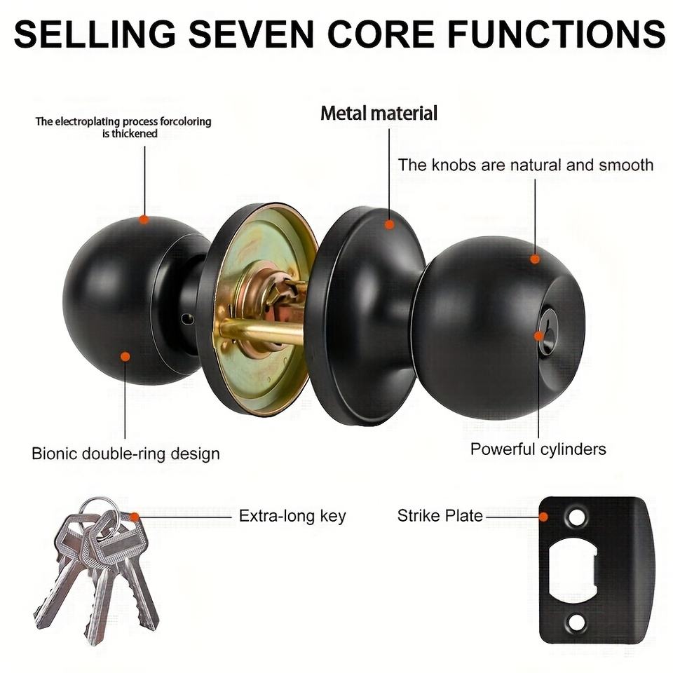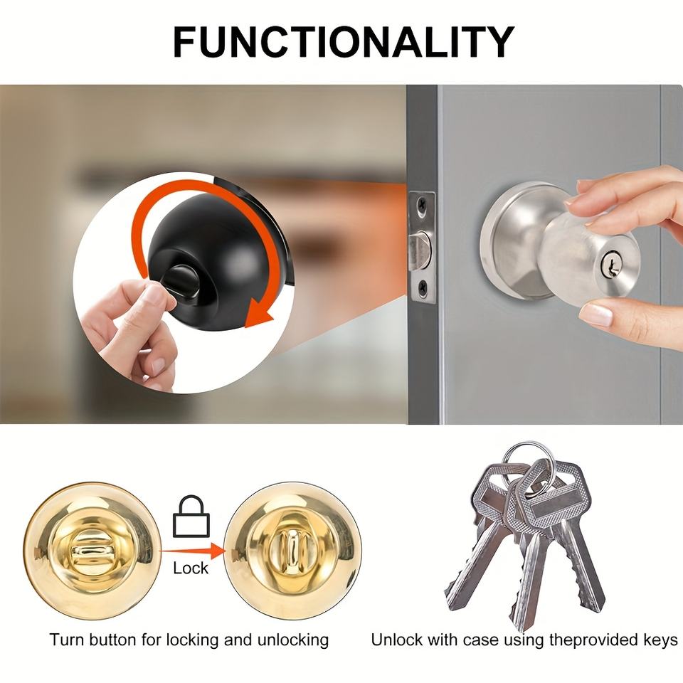Key Ball Round Cylindrical Brass Cylinder Stainless Steel Handle Door Handle Lock