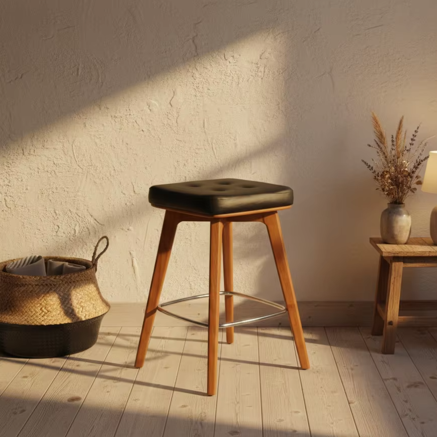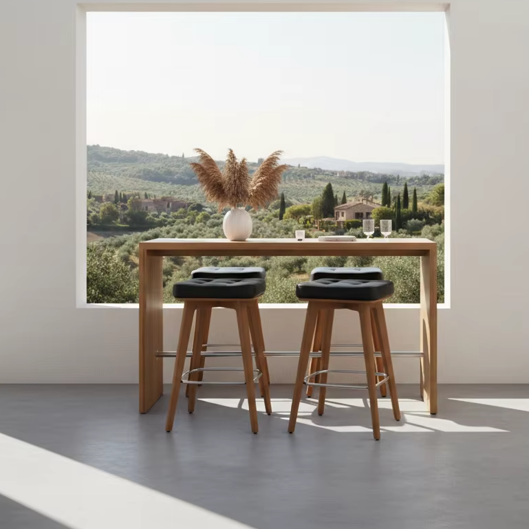 เก้าอี้บาร์ทรงเหลี่ยม ทำด้วยมือจากไม้สักแท้ ตกแต่งแบบธรรมชาติ ดีไซน์ทันสมัย เป็นมิตรกับสิ่งแวดล้อม ทนทาน เหมาะสำหรับโรงแรม คาเฟ่ และโครงการรีสอร์ท