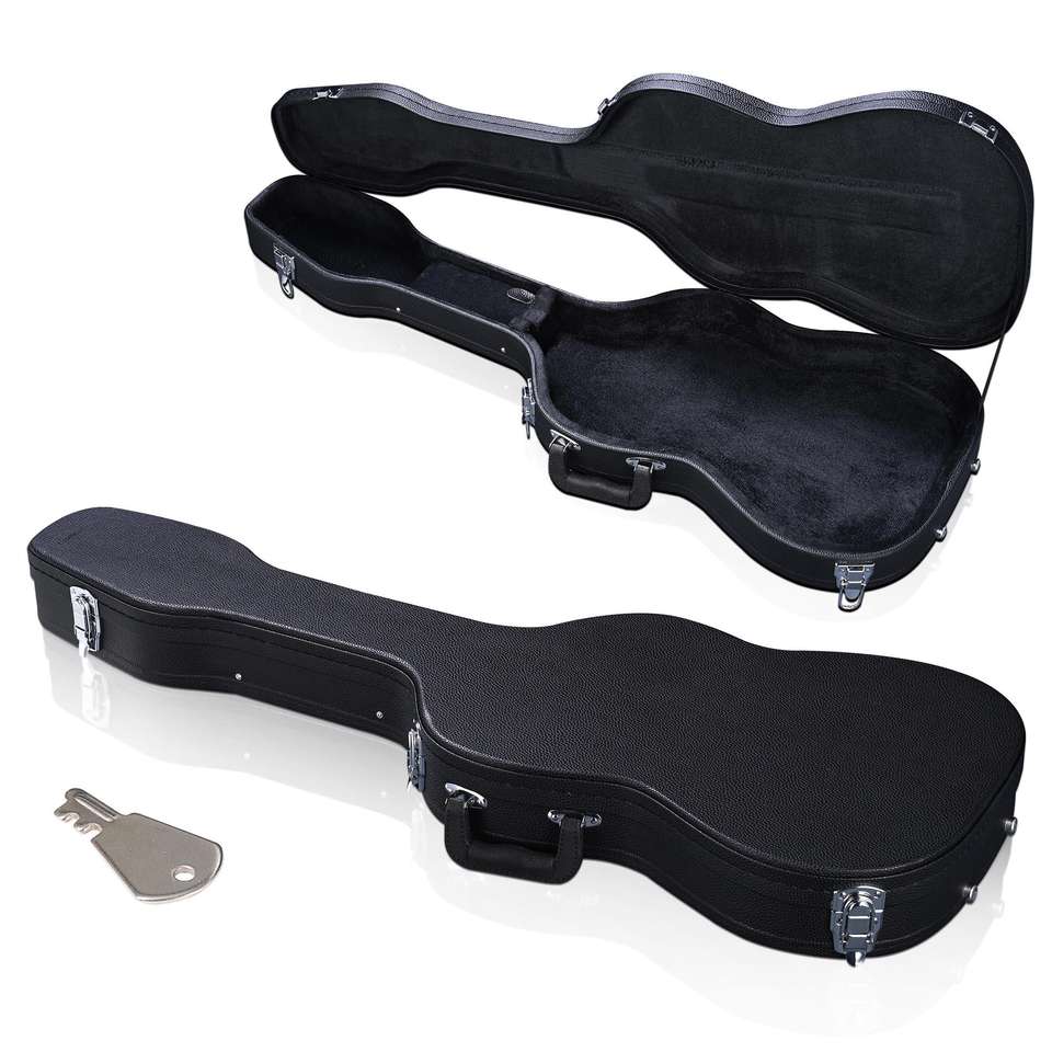 กล่องใส่กีตาร์ไฟฟ้าแบบมีกุญแจล็อค ด้านนอกหุ้มหนังเทียม ด้านในเป็นไม้ สำหรับเก็บเครื่องดนตรีประเภทเบส ผลิตในประเทศจีน