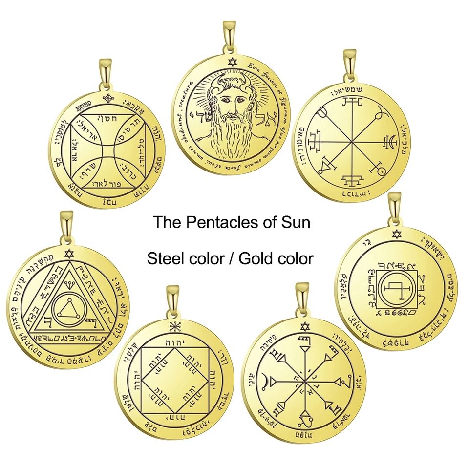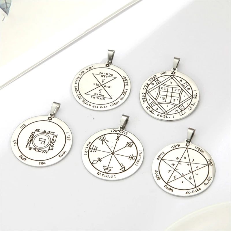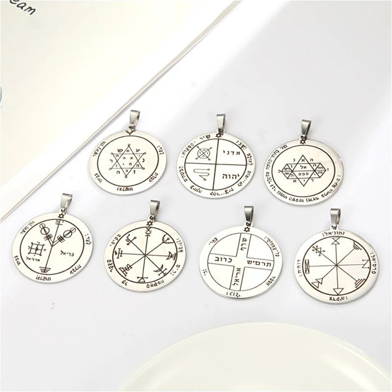 จี้กุญแจแห่งโซโลมอนสำหรับสร้อยคอ เครื่องประดับสแตนเลส ของขลัง จี้รูปดวงจันทร์ ดาวเสาร์ ดาวพฤหัสบดี ดวงอาทิตย์ ดาวศุกร์ ดาวอังคาร ดาวพุธ ดาวพฤหัสบดี ดาวศุกร์