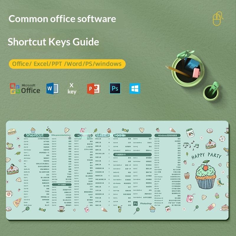 แผ่นรองเมาส์พร้อมปุ่มลัดคีย์บอร์ด สำหรับ Excel, Word, Photoshop แผ่นรองขนาดใหญ่พิเศษ ฐานยางกันลื่น รองรับข้อมือ