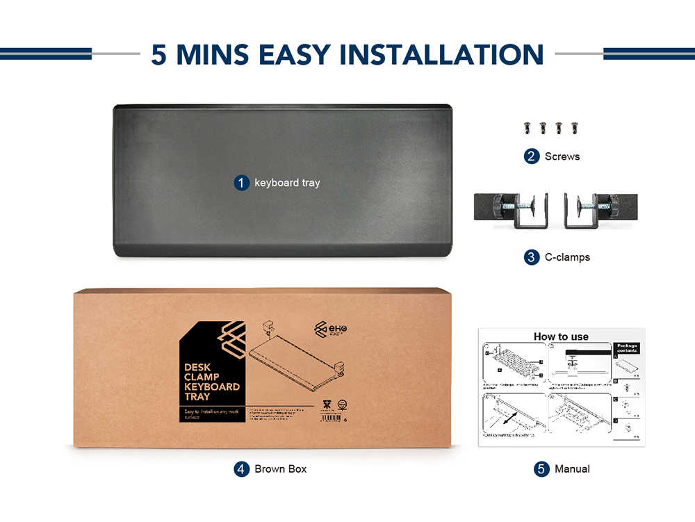 ที่หนีบโต๊ะลิ้นชักคีย์บอร์ดพร้อมแผ่นรัดข้อมือเจล