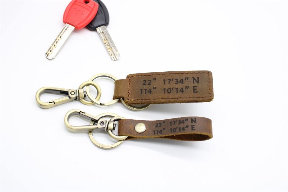 พวงกุญแจหนังสลักส่วนบุคคลพวงกุญแจของขวัญที่กำหนดเองสำหรับเขา LKCN-0058ของขวัญครบรอบคริสต์มาส