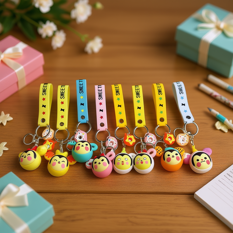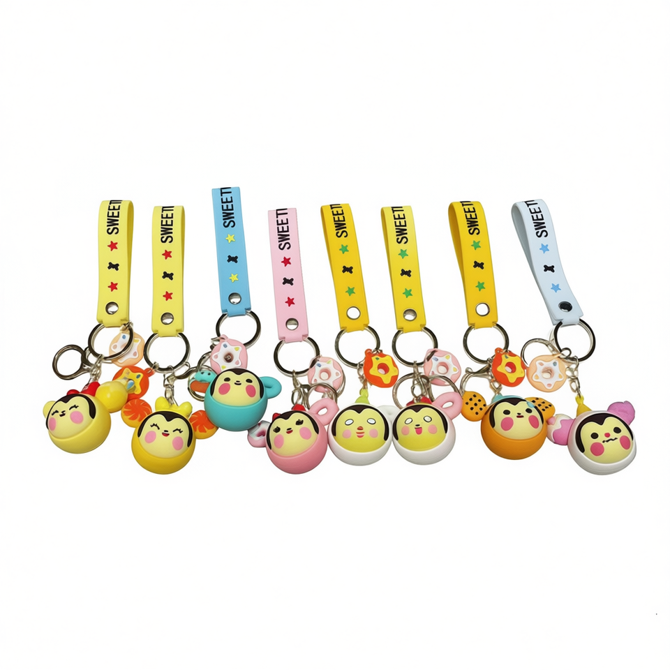 พวงกุญแจตุ๊กตาน่ารัก พลาสติกทรงกลม โลหะผสมสังกะสี ของขวัญ 12 ชิ้น พิมพ์ลายซิลค์สกรีน ทนทาน ผลิตในเม็กซิโก