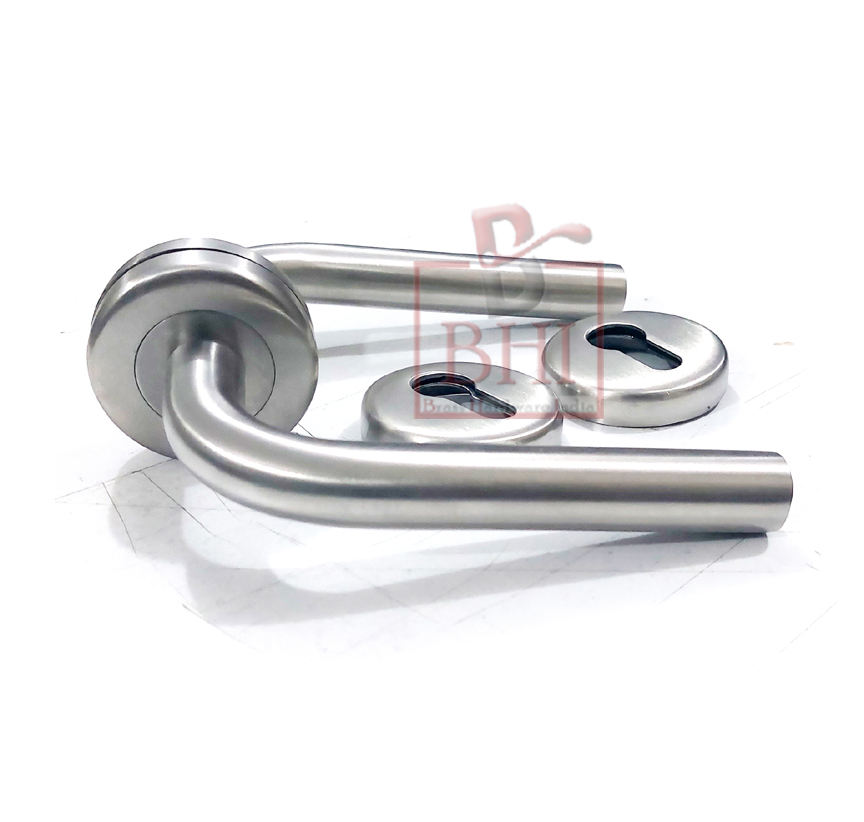 STAINLESS STEEL DOOR HANDLE ON ROSE WITH KEYHOLE
