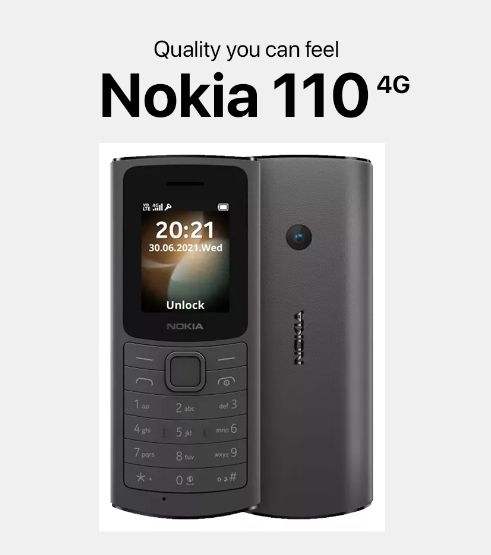 ปุ่มกดโทรศัพท์สำหรับ Nokia 110 (รุ่น2021) โทรศัพท์มือถือมือสอง4G มีซิมการ์ดคู่แบตเตอรี่มีความยาวสแตนด์บาย