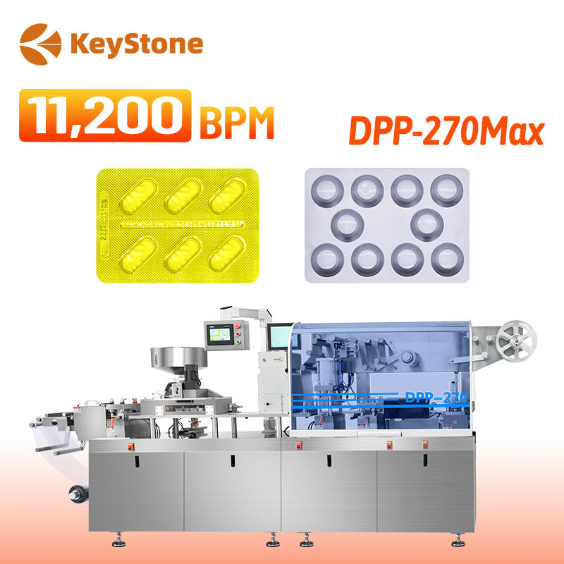 เครื่องบรรจุภัณฑ์อัตโนมัติความเร็วสูง Keystone Packaging DPP สำหรับบรรจุแคปซูลซอฟเจลอะลูมิเนียม พีวีซี และยาเม็ดแบบแผง
