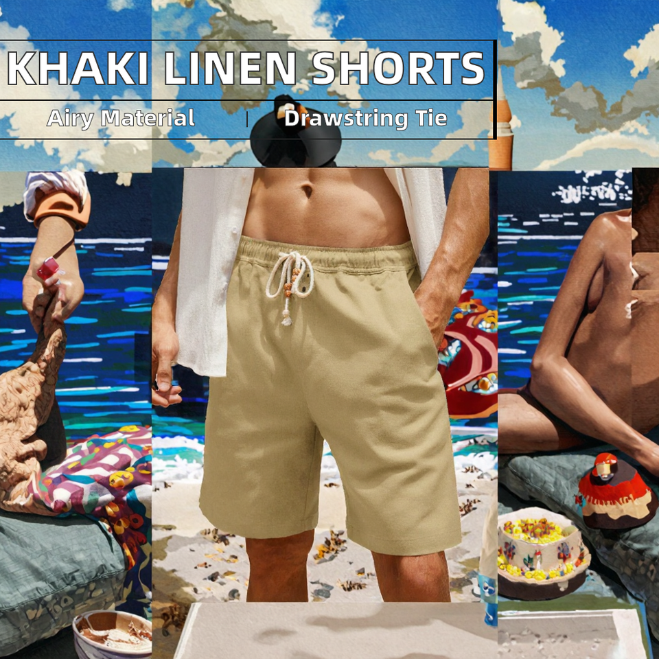 Khaki กางเกงขาสั้นเบอร์มิวดาสำหรับผู้ชาย, กางเกงขาสั้นเบอร์มิวดาแบบผูกเชือก7นิ้วผ้าโพลีเอสเตอร์ระบายอากาศได้ดี95% ทึบเอวกลางไซส์ใหญ่พิเศษแฟชั่นวันหยุด