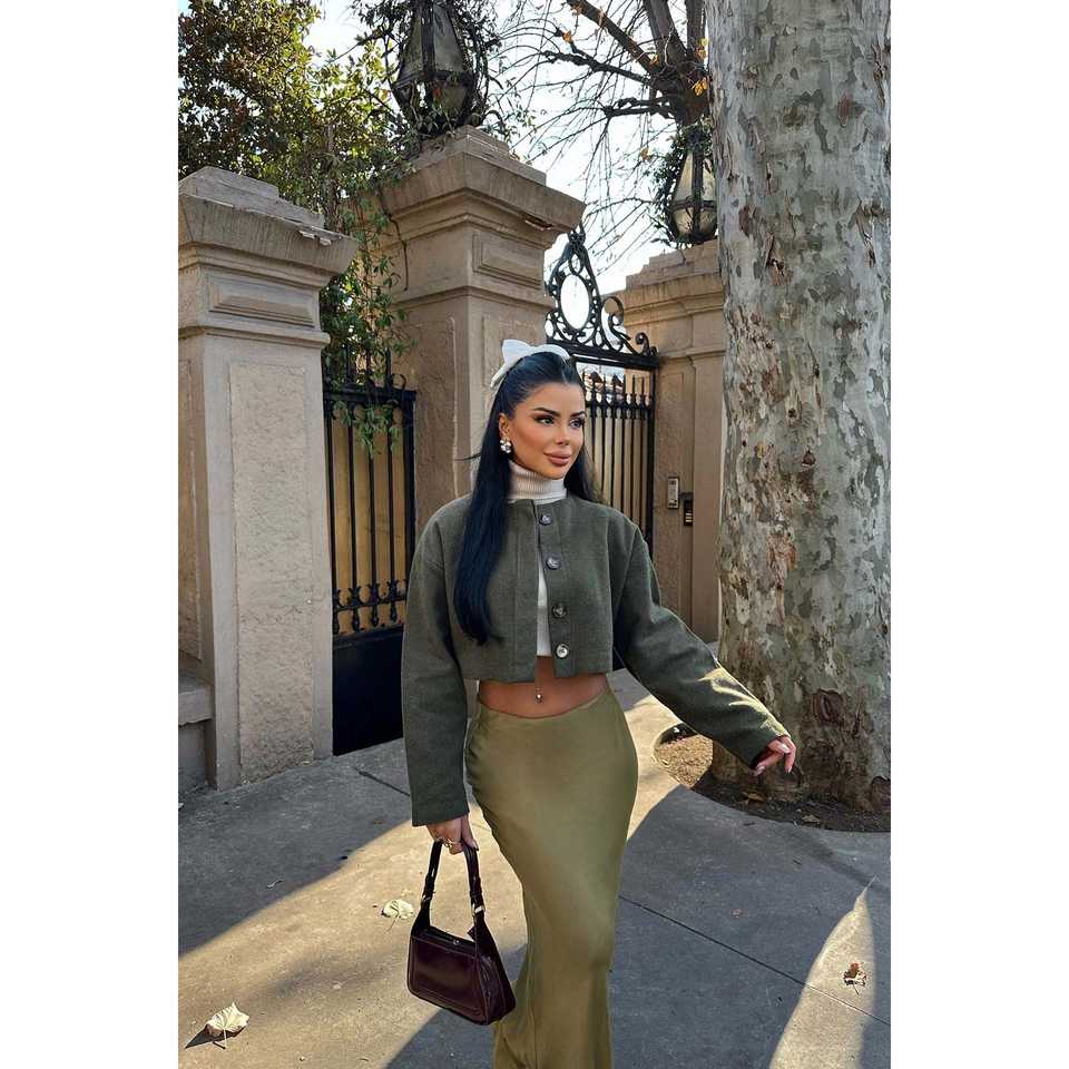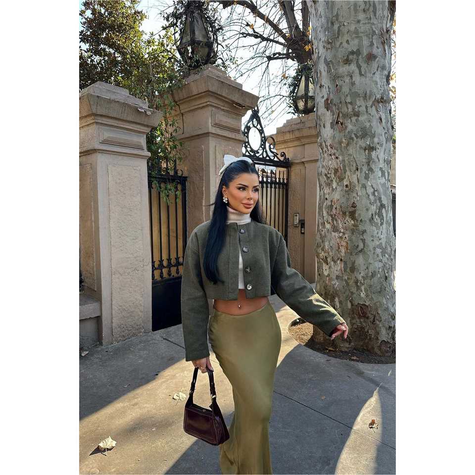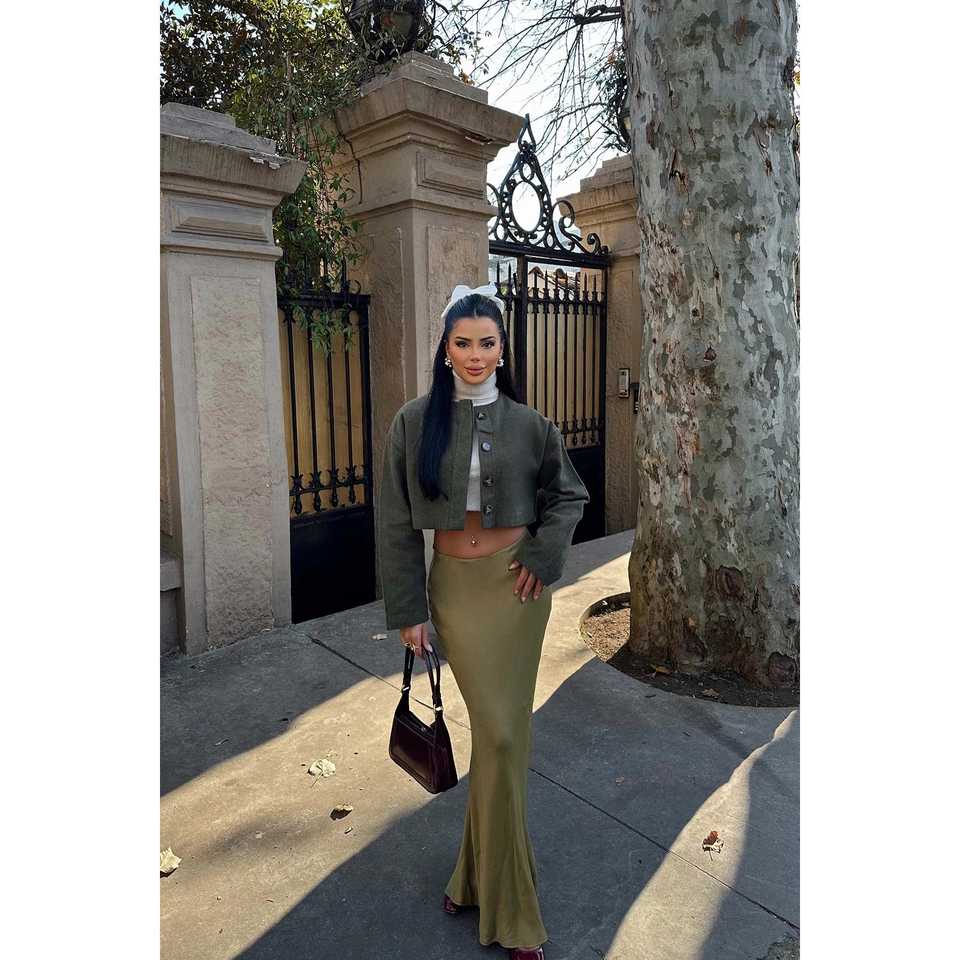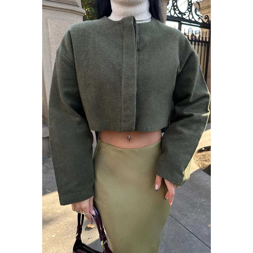 เสื้อแจ็คเก็ตหนังงูสีกากี Anna แบบสั้น มีฮู้ด ปักโลโก้ได้ ไซส์ใหญ่ บุขนสัตว์ โพลีเอสเตอร์ สำหรับฤดูใบไม้ร่วง ฤดูใบไม้ผลิ ฤดูหนาว ไซส์ XL