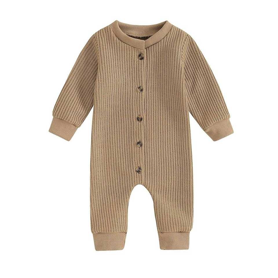 ชุดบอดี้สูทเด็กอ่อนสีกากี ผ้าฝ้ายออร์แกนิค 100% เป็นมิตรต่อสิ่งแวดล้อม พร้อมซิปเฉียงและแขนเสื้อแบบแร็กแลน ชุดจั๊มสูทแบบชิ้นเดียวสำหรับเด็กผู้ชายและเด็กผู้หญิง ลายเรียบ