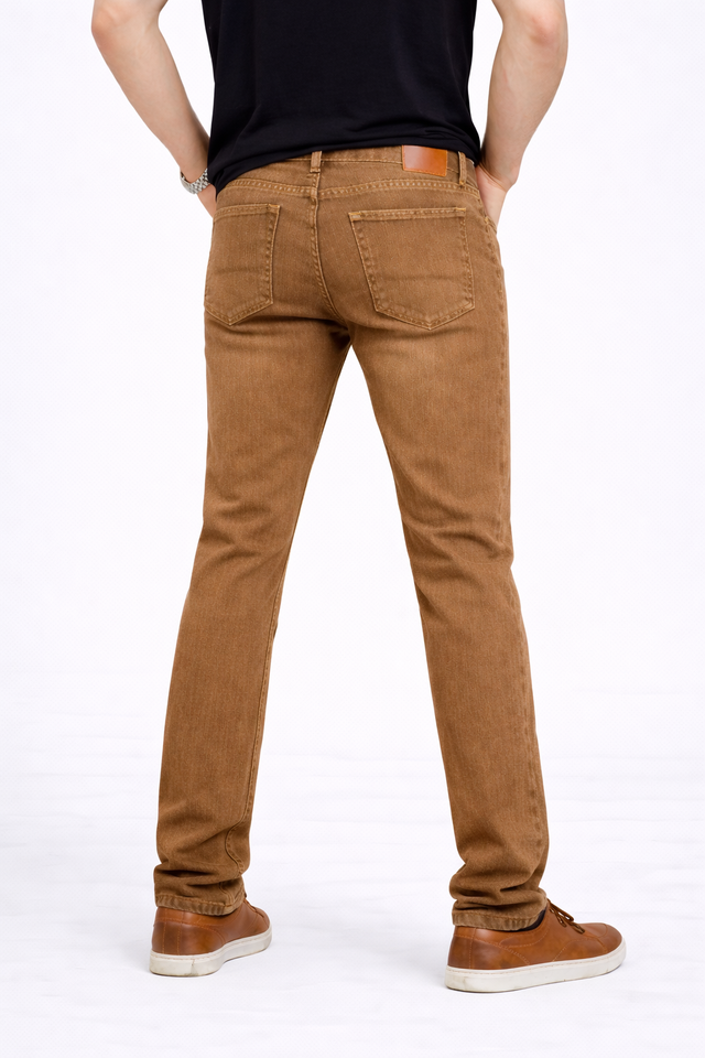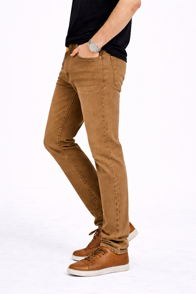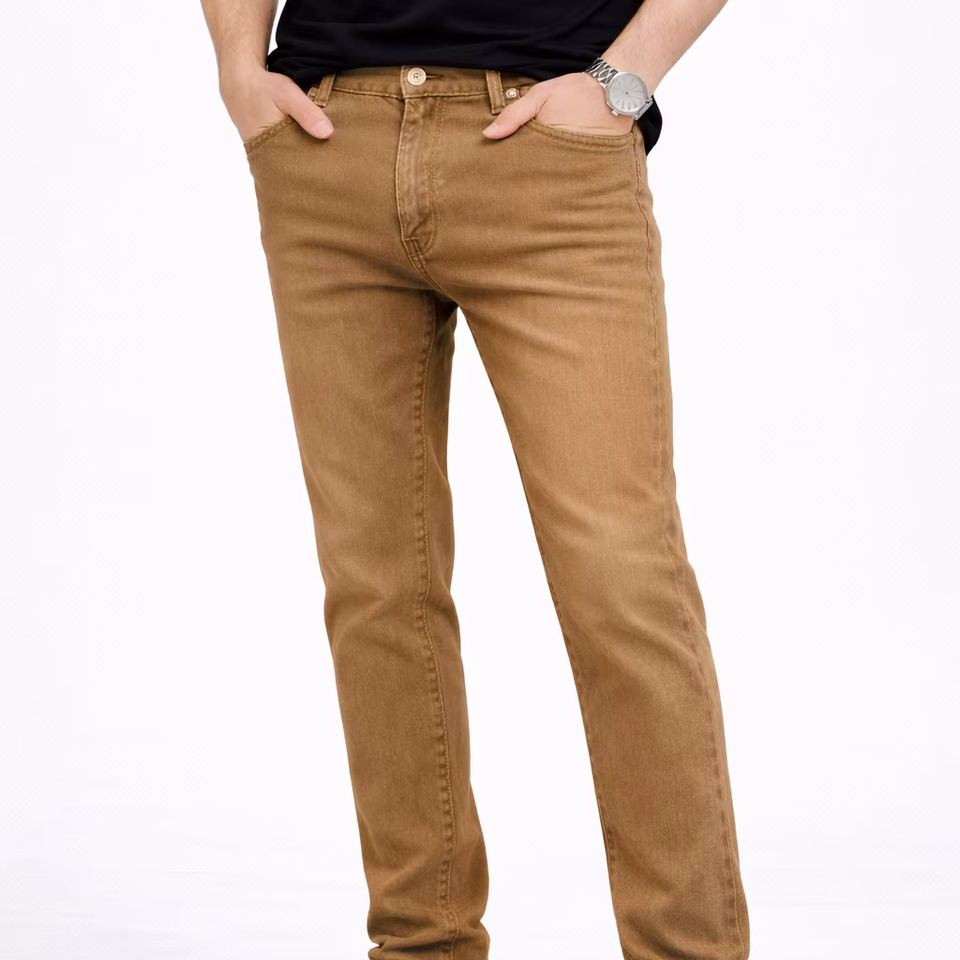 กางเกงยีนส์เดนิมทรงสลิมฟิตสำหรับผู้ชาย สีน้ำตาลกากี คลาสสิก ใส่สบาย ยืดหยุ่นได้ดี – ผลิตภัณฑ์คุณภาพสูงที่เหมาะกับทุกวัน ผลิตจากผ้าฝ้ายพรีเมียม