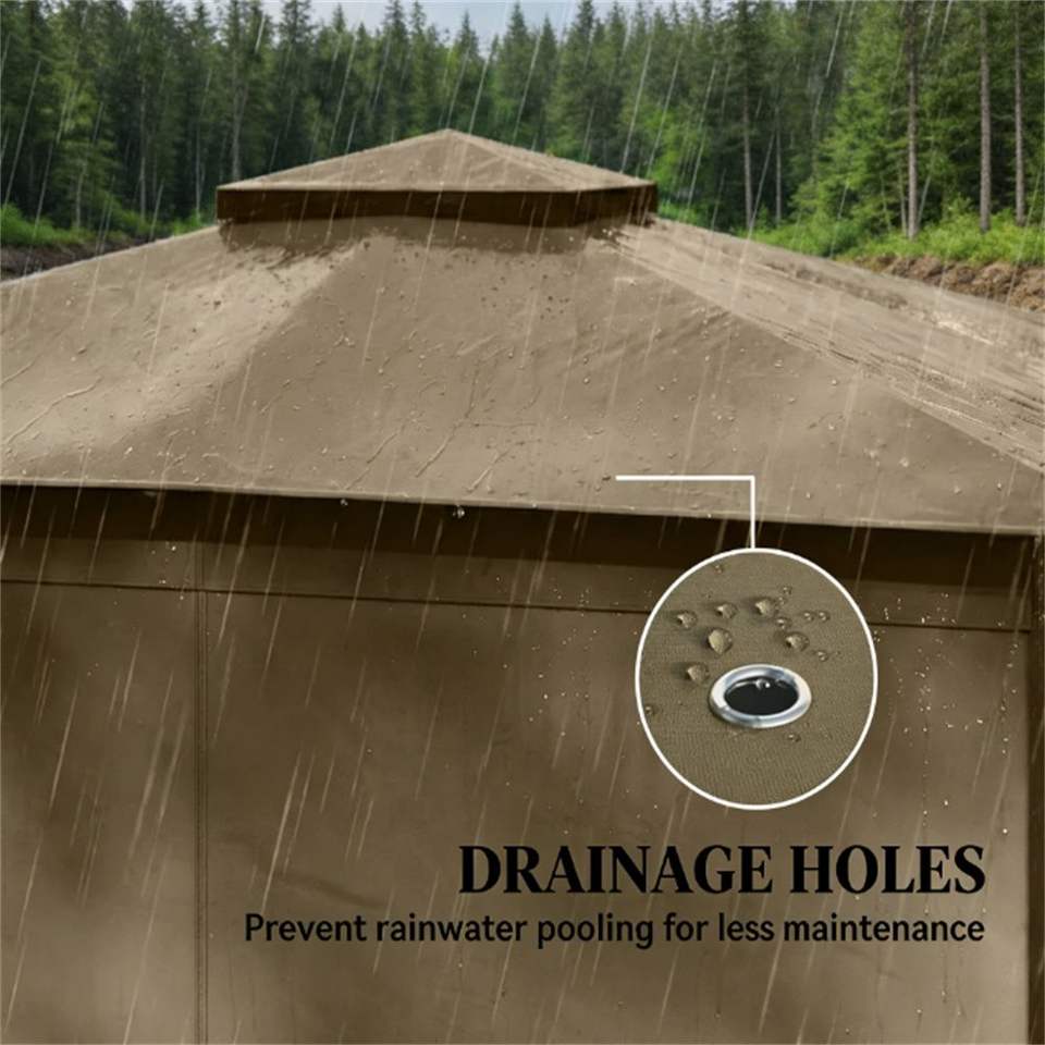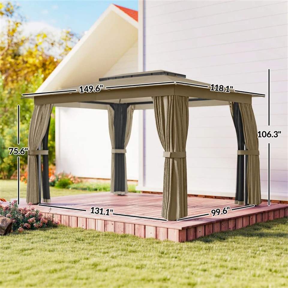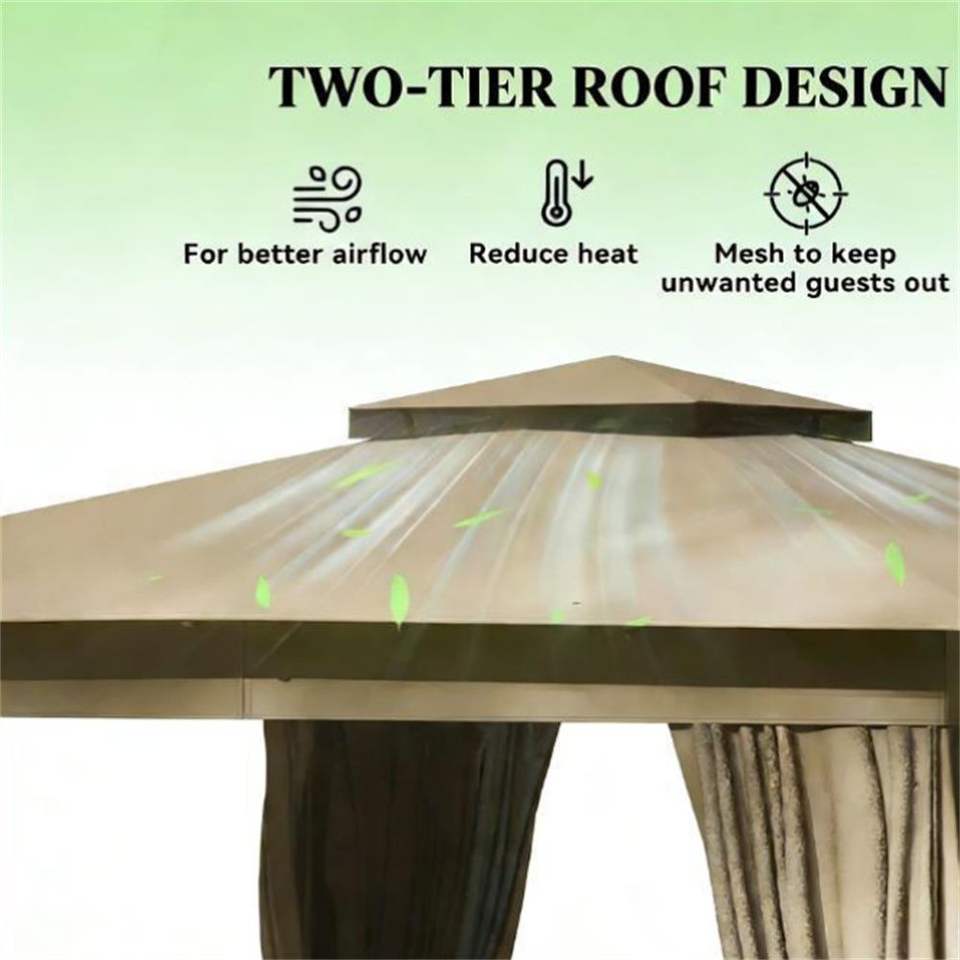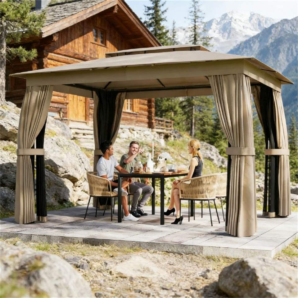 สีกากีซอฟท์ท็อปสำหรับระเบียงกลางแจ้งศาลาม่านบังแดดพร้อมผ้าม่าน