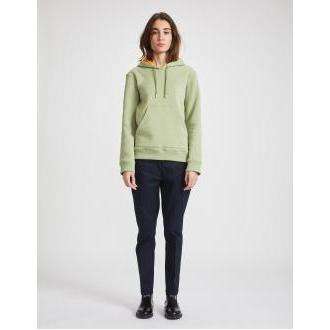 Khaki Green Women's Organic Cotton Hoodie Cute Crop Top Design with Embroidered Waffle Fabric Hooded Sweatshirt