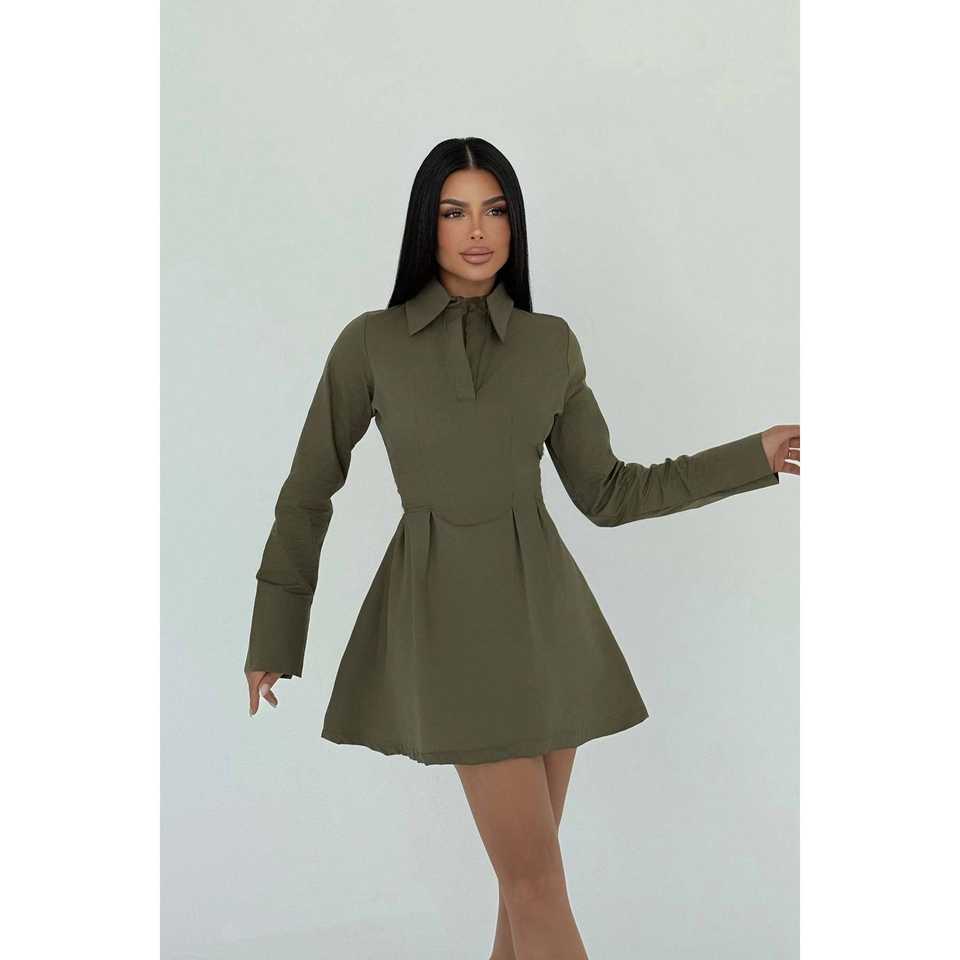ชุดเดรสทรงเอไลน์สีกากี แบรนด์ Herda ดีไซน์หรูหราสไตล์วินเทจ คุณภาพสูง ลายเรียบ ไซส์ XL ทรงเอ็มไพร์ คอแบบผูก สายคล้องคอ ยาวถึงพื้น เหมาะสำหรับงานกลางวัน ชุด 2 ชิ้น