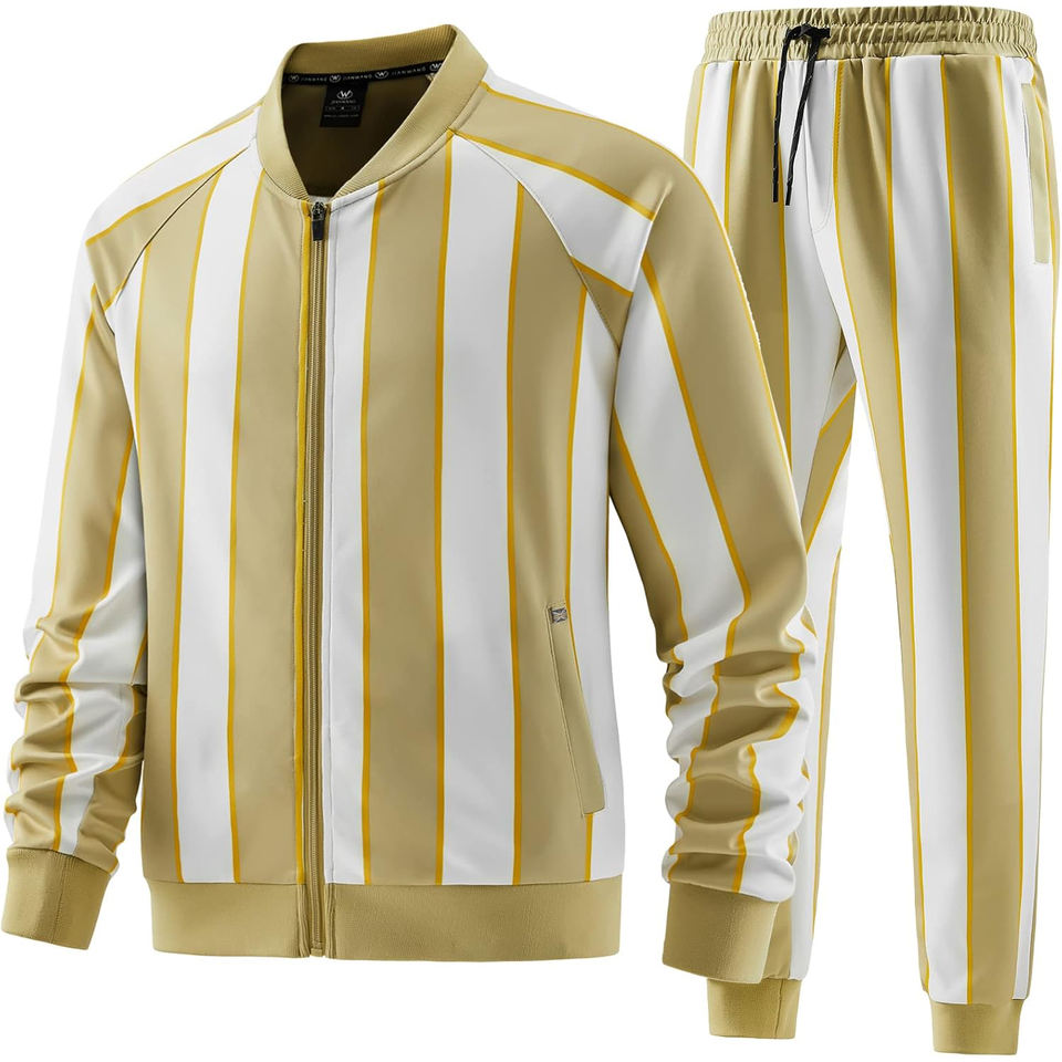 ชุดวอร์มผู้ชายสีกากีและสีขาว ชุดวิ่งผู้ชายแบบ 2 ชิ้น (แพ็ค 2 ชิ้น)
