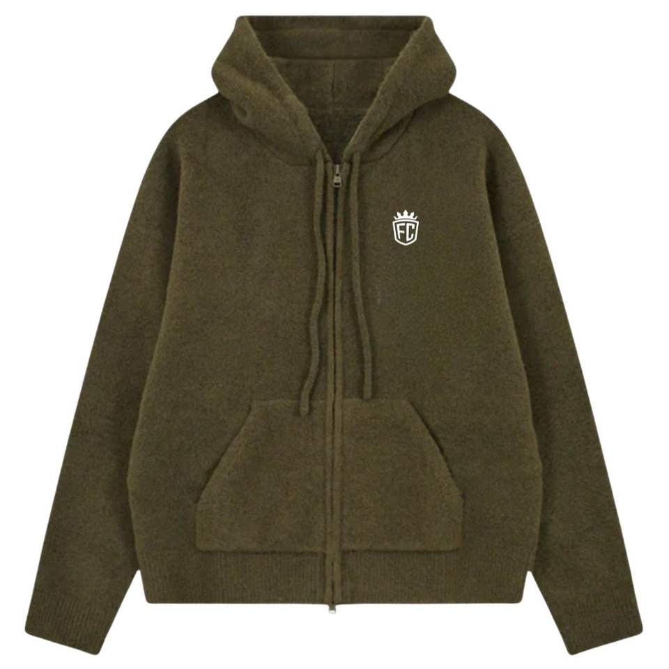 เสื้อฮู้ดไหมพรมสีกากีแบบซิปพร้อมโลโก้รูปมงกุฎ เสื้อฮู้ดนุ่มสบายเหมาะสำหรับใส่ลำลอง เหมาะสำหรับผู้ชายและผู้หญิง