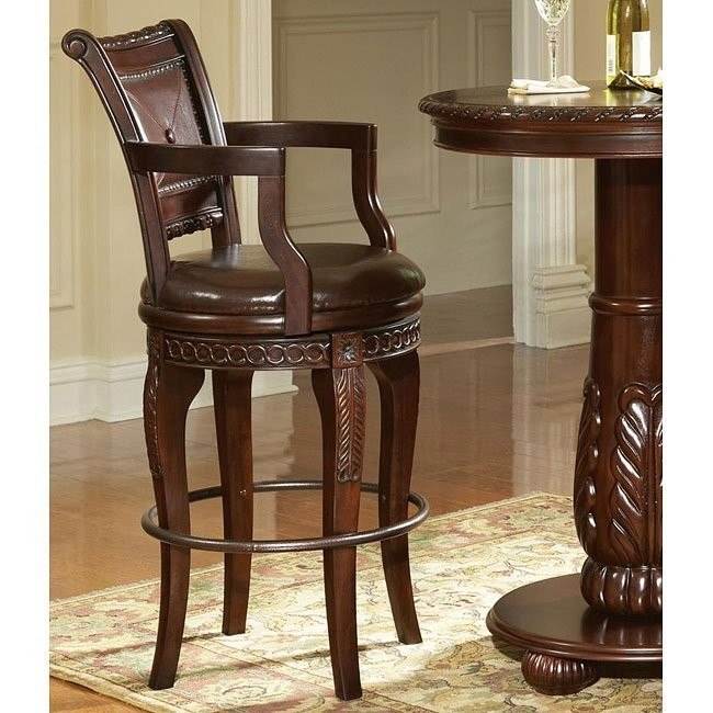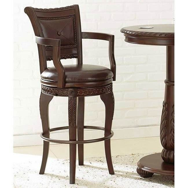 Description:bar stool in mahogany with wood carvings and synthetic leather.
