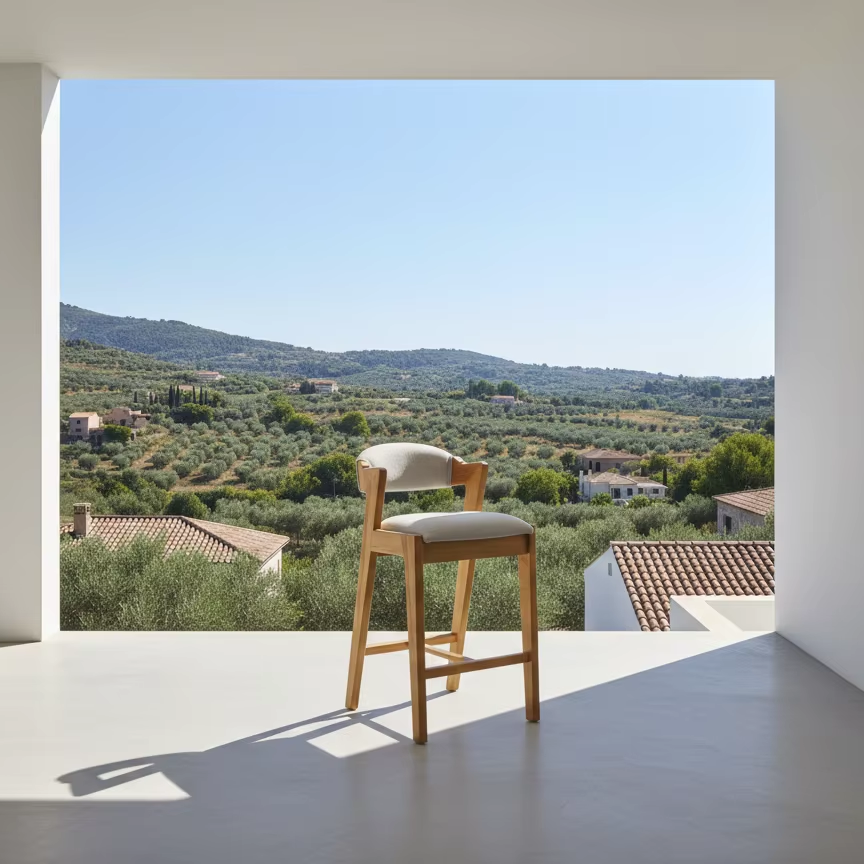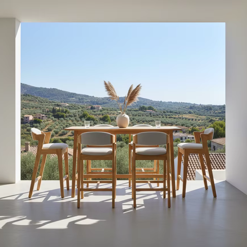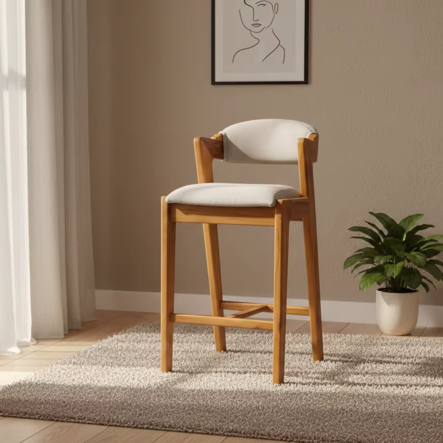 เก้าอี้บาร์ Kia โครงไม้สักธรรมชาติ เป็นมิตรกับสิ่งแวดล้อม ทนทาน สไตล์ร่วมสมัย เรียบง่าย ออกแบบตามสั่ง สำหรับใช้ในร่มเชิงพาณิชย์