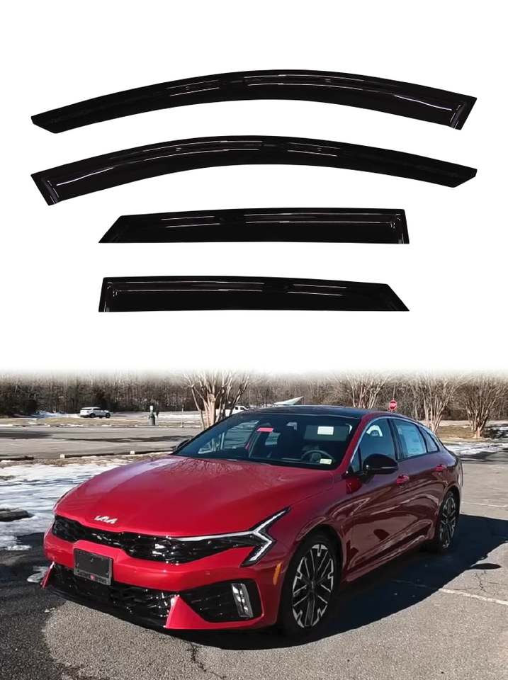 ชุดบังแดดหน้าต่างรถยนต์ Kia K5 ปี 2021 ขึ้นไป รุ่น Slimline สีดำใส อะคริลิค GCS 4 ชิ้น ป้องกันลมและฝุ่น พร้อมเทป 3M